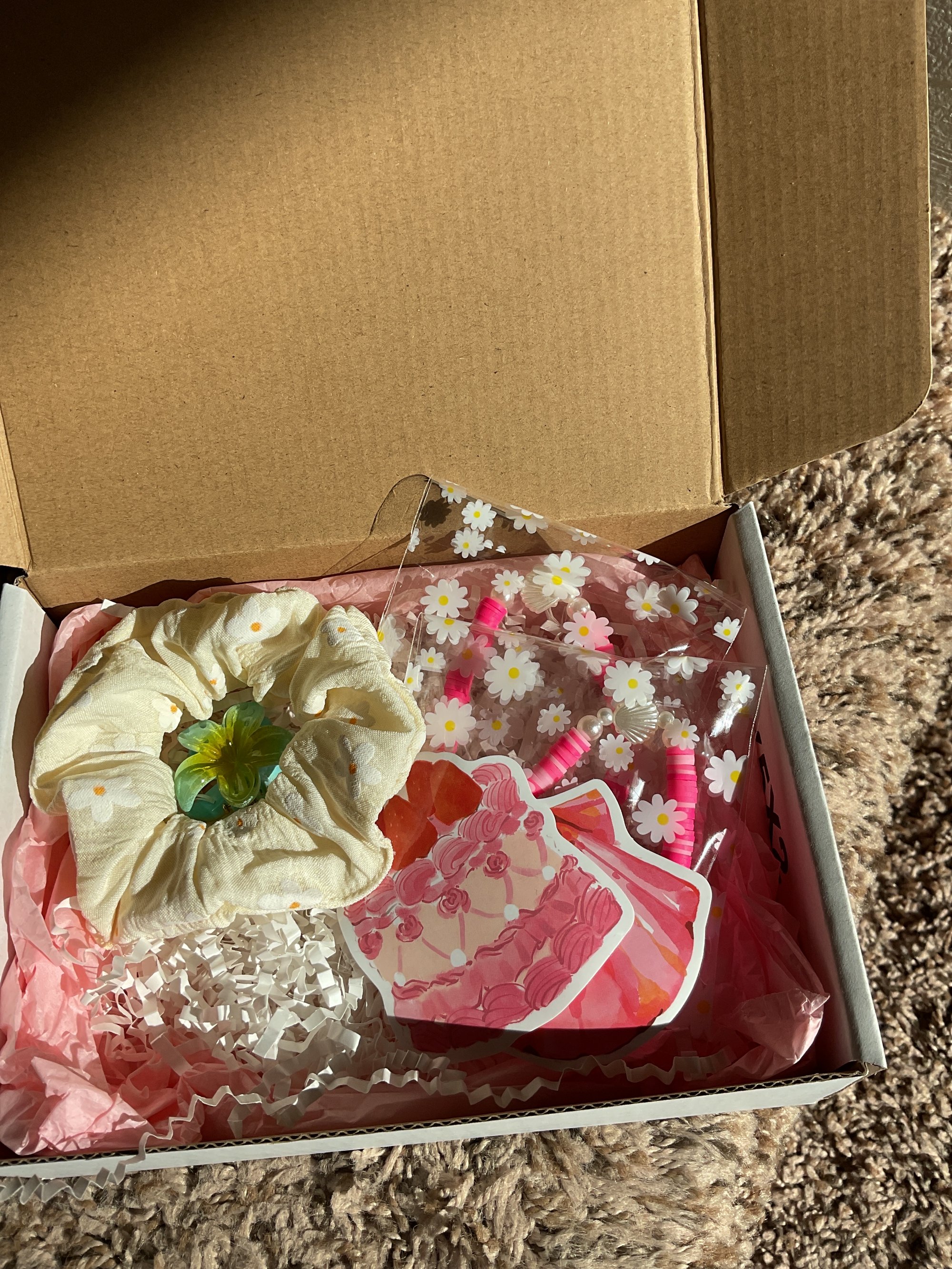 ✨This box is perfect for summer it includes ✨ -1 scrunchie -2 summer bracelets -A mini flower claw clip -2 stickers